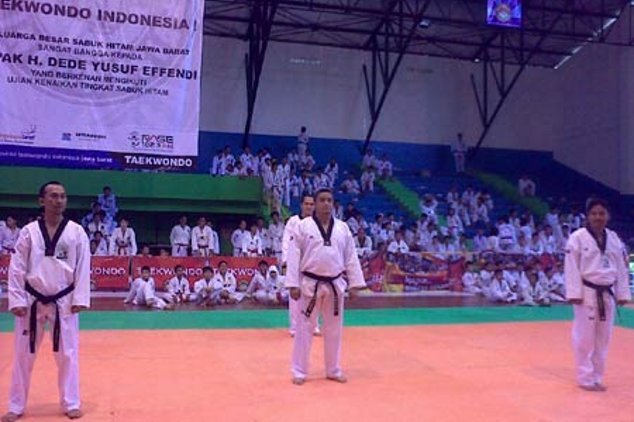 Wakil gubernur Jawa Barat sekaligus mantan artis sinetron, Dede Yusuf juga memiliki ketrampilan bela diri yakni Tae Kwon Do. Foto yang diambil tahun 2010 ini menunjukkan Dede sedang menjalani ujian kenaikan tingkat dari Dan-4 ke Dan-5. (Foto: detikBandung).